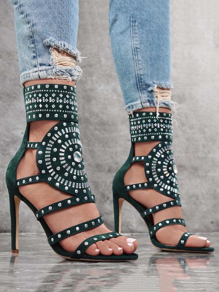 Metallic Rivet Embellished Stiletto Sandals - Green
