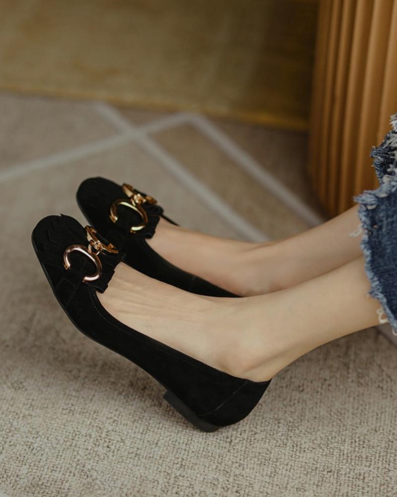 Metallic Tassel Patch Round Toe Flats, Black