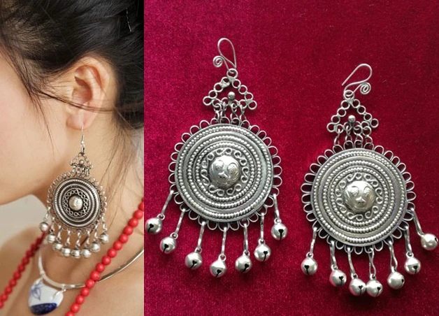 Miao народные ювелирные изделия ручной работы Miao серебряные серьги с подвесками от солнца
