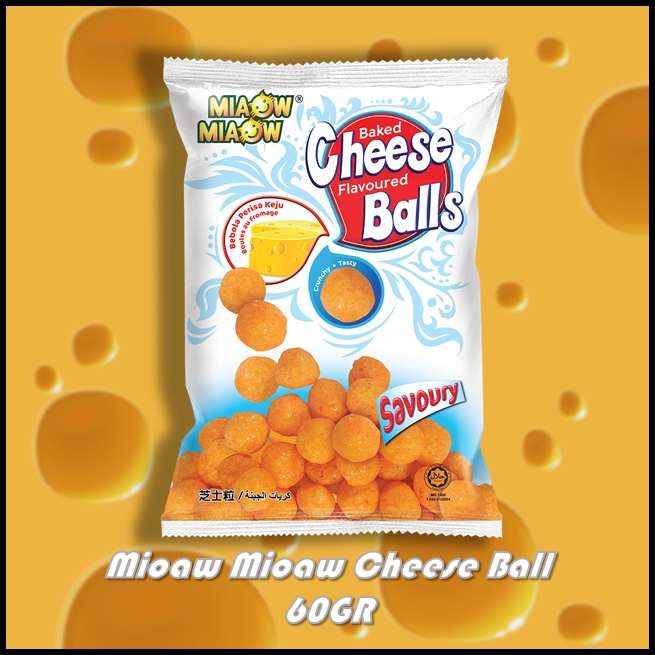 Miaow Miaow Cheese Ball merupakan makanan ringan yang terbuat dari kentang pilihan dengan bumbu khas keju yang pastinya mengandung kualitas terbaik.Cocok untuk segala jenis kegiatan bersama teman teman dan keluarga. Wujudkan kegembiraan saat berkumpul dengan menyediakan Mioaw Mioaw Cheese Ball Crackers sebagai makanan pendamping kamu.