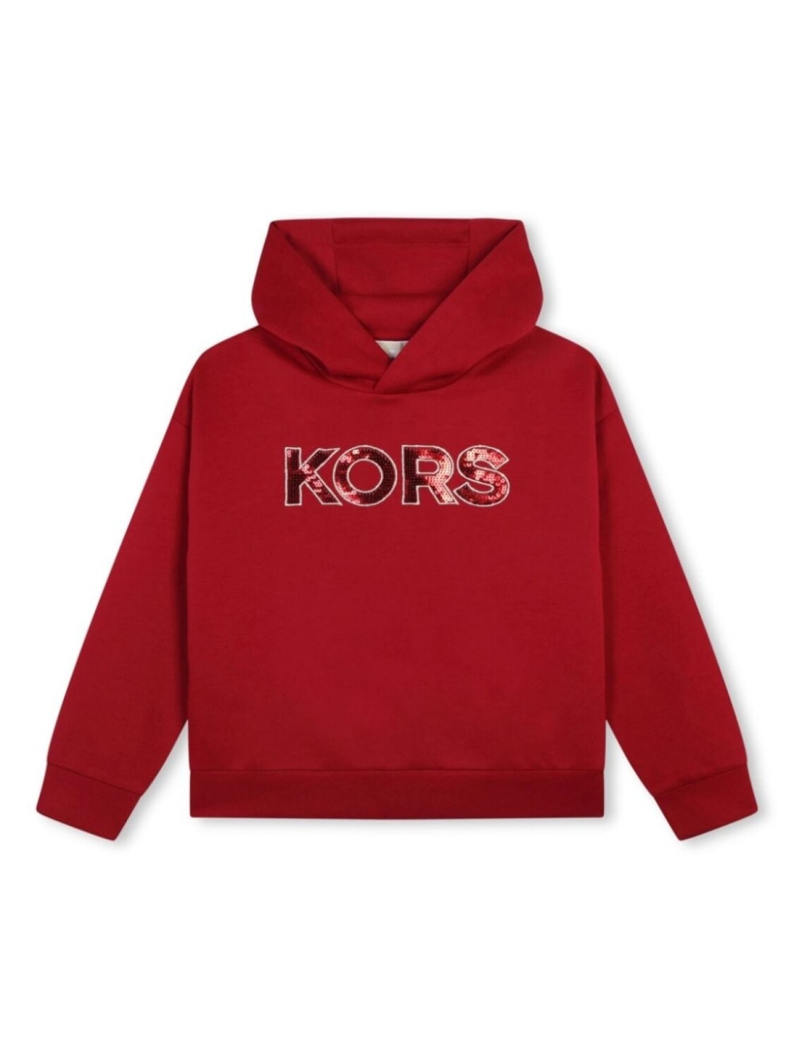 Подробнее о товаре: • темно-красный • ткань джерси • вышитый логотип спереди • украшение из пайеток • классический капюшон • длинные рукава • подол и манжеты в рубчик • прямой подол