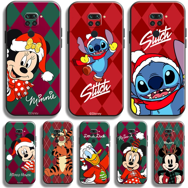 Mickey Minnie Stitch Duck For Xiaomi Redmi Note 9 5G 9T 9S 9 Pro Phone Case Black Silicone Cover Back Liquid Silicon Coque