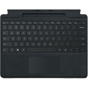 Bring easy typing and fluid pen input to your Surface Pro 8, 9, or X with the Surface Pro Signature Keyboard in black from Microsoft. Utilizing a soft Alcantara construction and mechanical keys for a comfortable typing experience, this keyboard also features a large glass touchpad for easy navigation. Plus, an integrated storage space and wireless charging support allow for the easy addition of a Microsoft Slim Pen 2, available separately.