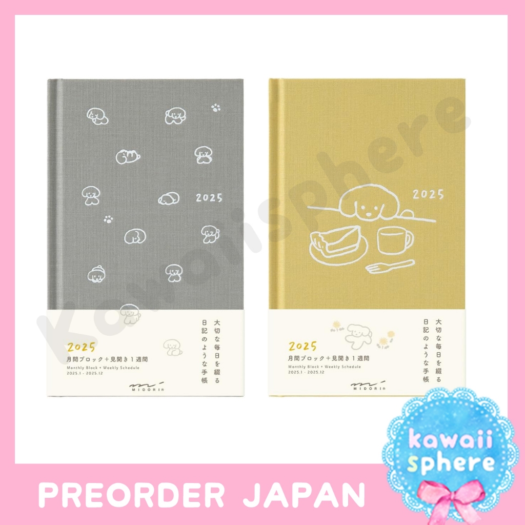 Midori 2025 Hard Cover Monthly + Weekly | Dog Pattern | Planner 2025 Midori | Preorder Handcarry Japan