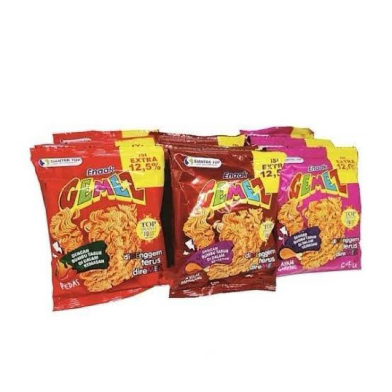 Mie Gemez merupakan salah satu brand milik PT. Siantar Top, Sidoarjo. Satu varian snack mie kering yg kriuk dilengkapi bumbu tabur terpisah aneka rasa. Tinggal digenggam dan di remas lalu taburkan bumbunya langsung dikonsumsi. Snack "warung" yg murah meriah namun tak melupakan kelezatannya buat selingan ngemil dikala senggang. Tua muda menyukainya dgn rasa gurih yg Enaak. Dijual 1 renteng isi 10. Ber BPOM dan Halal MUI