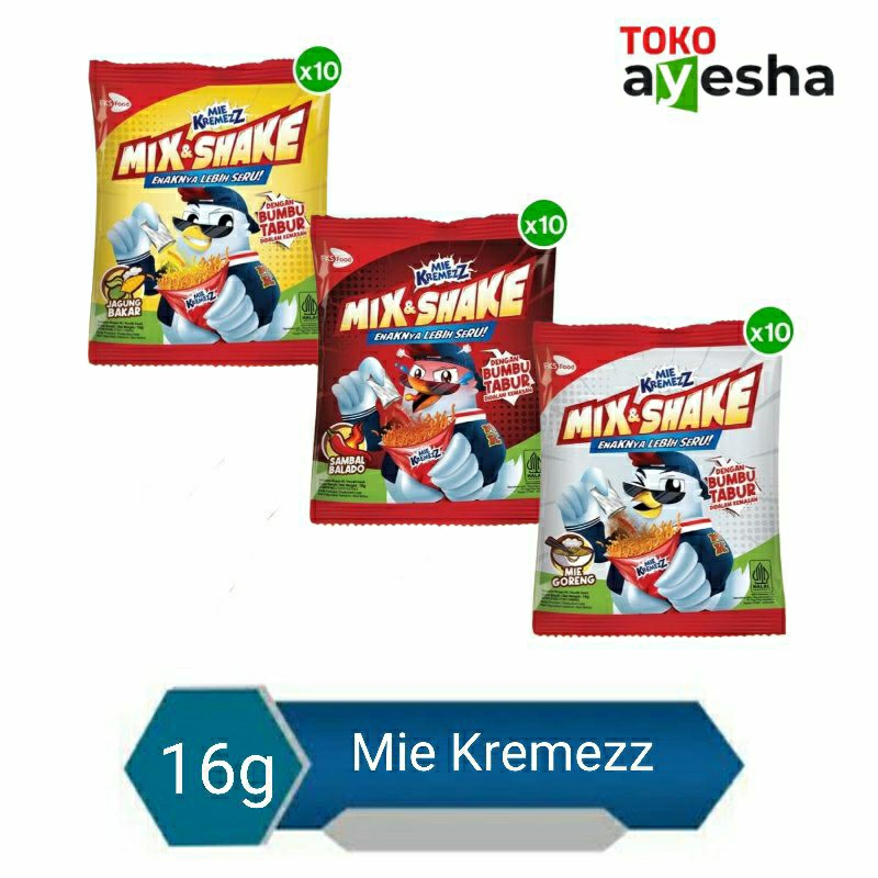 Mie Kremezz adalah snack mie renyah dengan varian rasa Mi Goreng, Sambal Balado, dan Jagung Bakar.