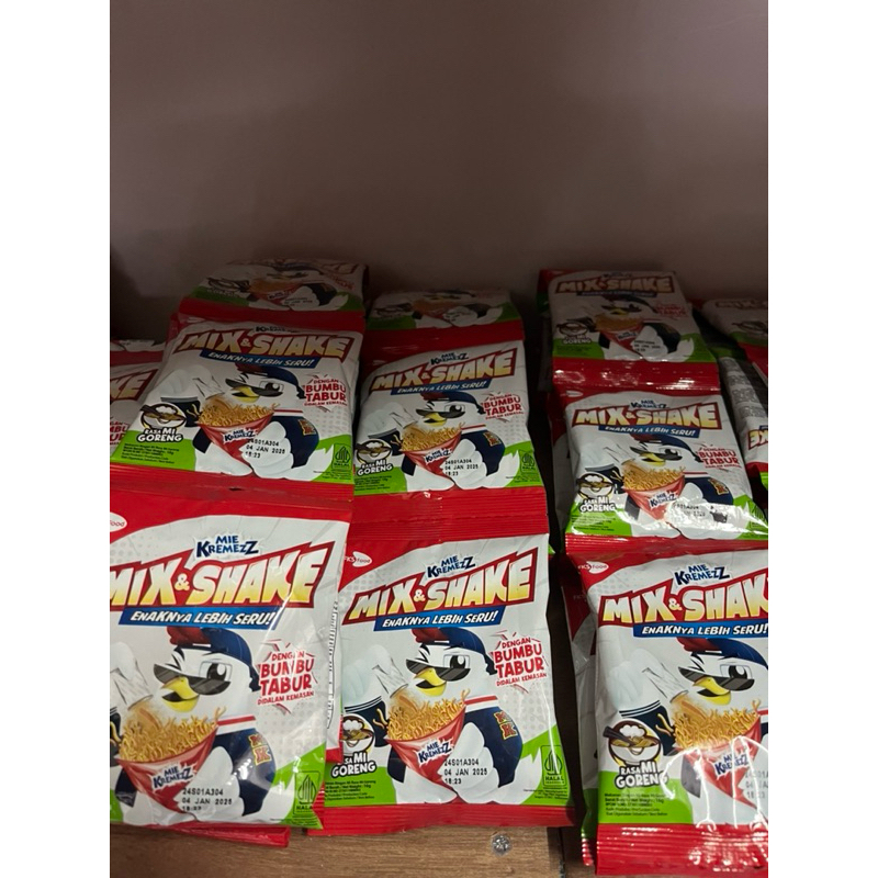 Snack berbentuk mie kering yang bisa dimakan langsung. Renyah dan bikin ketagihan. Snack mie kering dengan bumbu terpisah.