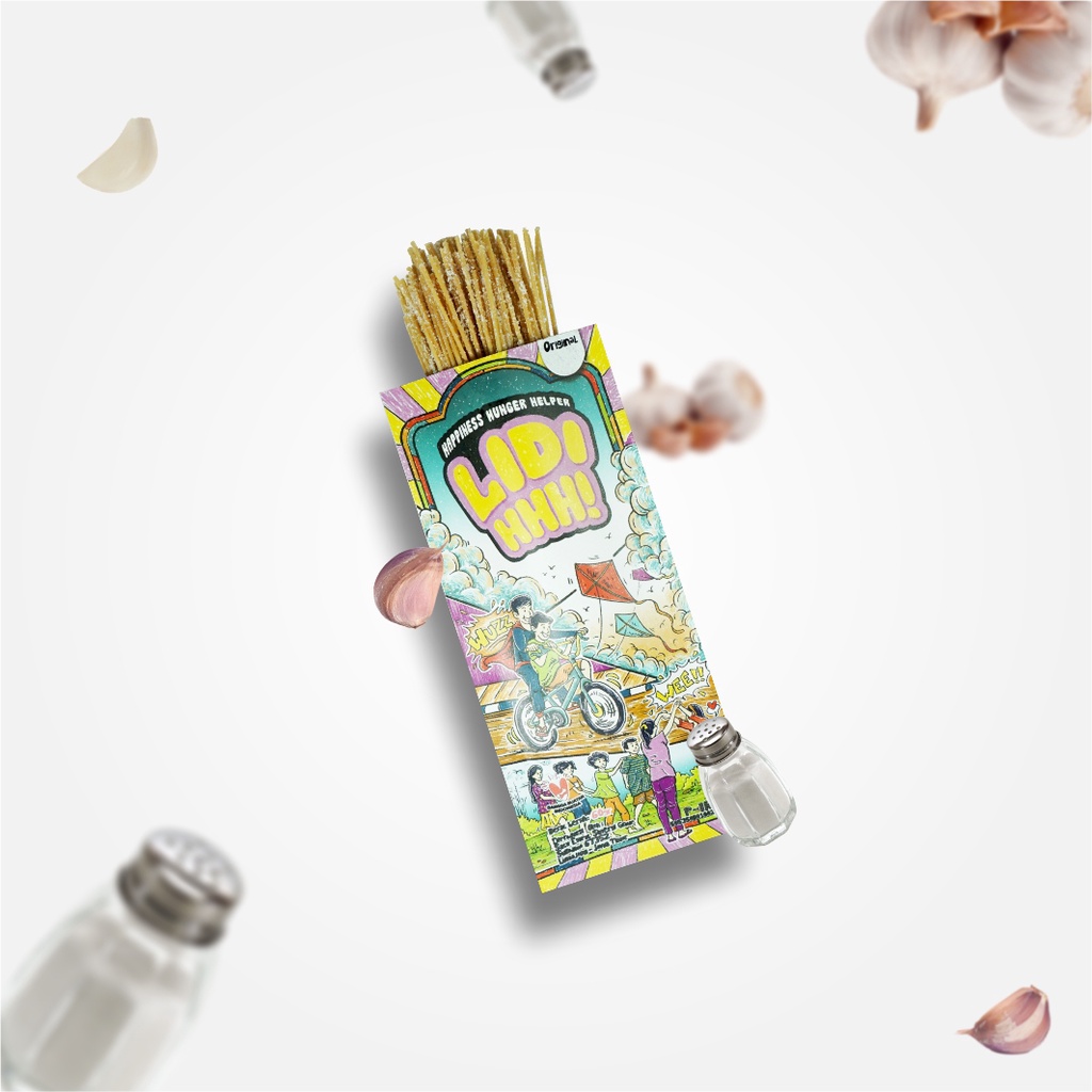 LIDIHHH! adalah camilan mie lidi rasa jadul dengan sentuhan kemasan modern dan banyak pilihan rasa. Rasanya gurih, renyah, dan bumbunya nendang—gak pelit! Didesain untuk memanjakan lidah pecinta jajanan SD, anak 90an, sampai gen Z!
