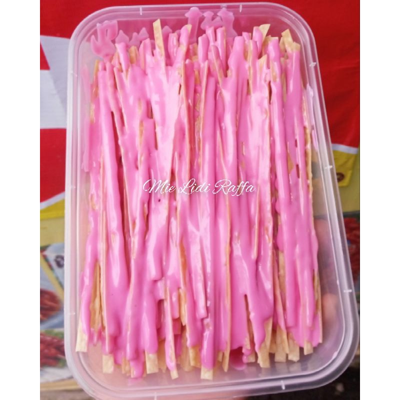 Mie Lidi goreng renyah dengan toping rasa strawberry.