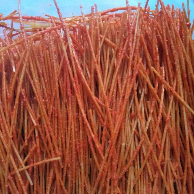 Mie lidi dan mie gepeng per setengah kilo. Varian rasa balado, jagung manis, super pedas, keju.