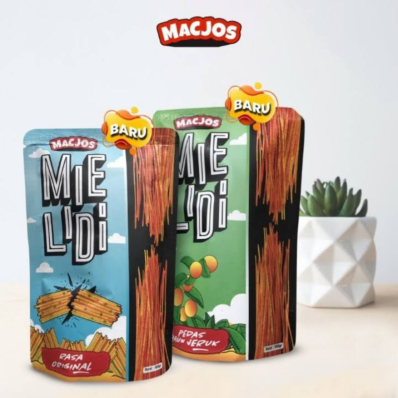 Mie Lidi dari MacJos. Netto 100gr. 2 varian rasa. Original dan pedas daun jeruk.