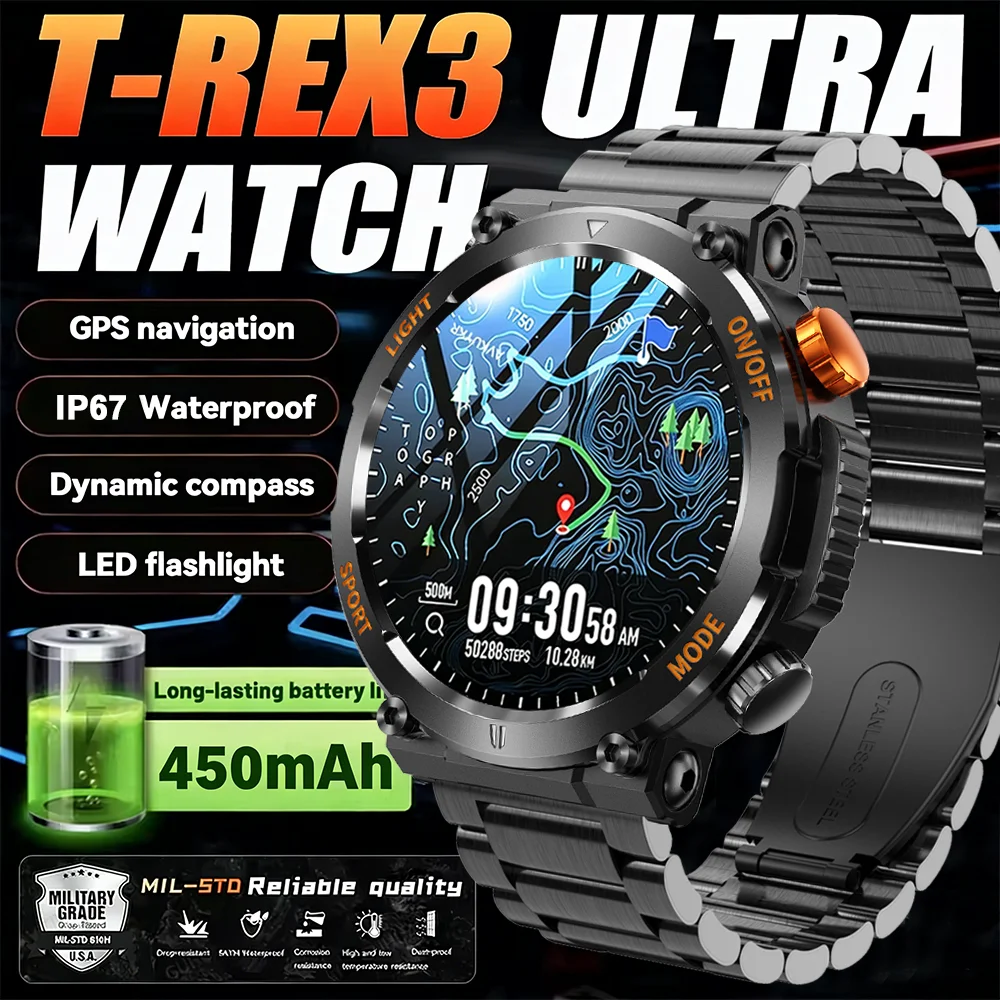 Military Smart Watch Men Compass LED Light 450mAh Large Battery 360*360 HD Screen Fitness Tracker BT Call Smartwatch Android iOS