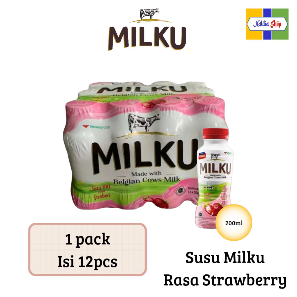 Milku hadir dalam botol PET yang unik, mudah di bawa dan bergaya modern. Isi kemasan 200ml , dimana ideal untuk sekali konsumsi/minum. Anak-anak akan menikmati Enak nya rasa Milku karena hadir dalam dua varian yaitu Premium Coklat dan Strawberry, dan para ibu bisa senang bahwa memberikan susu yang terbaik untuk anak nya.