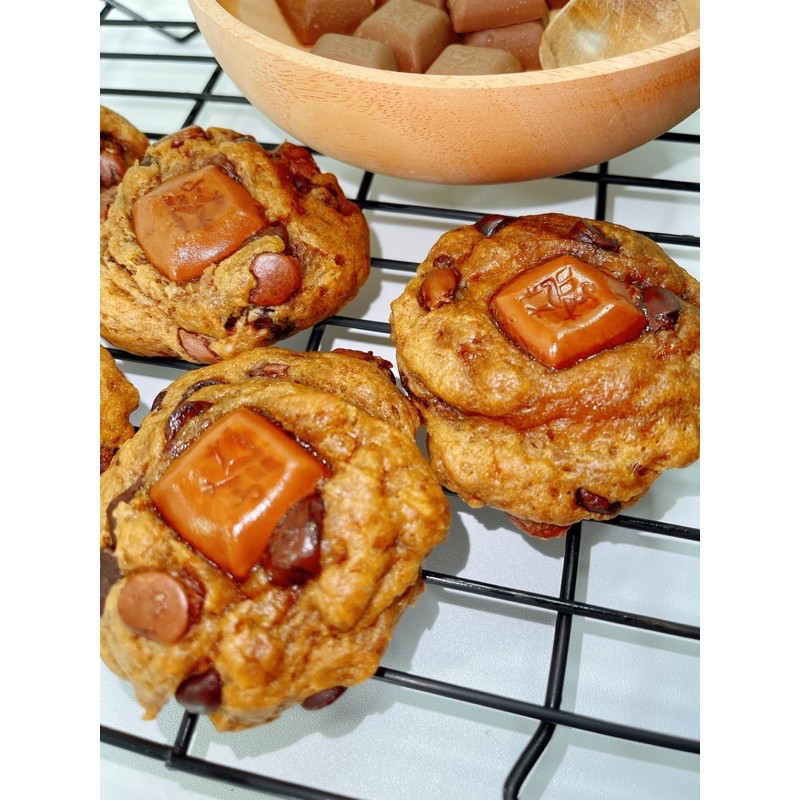 Butter cookies with super premium dark choco chips dan super premium milk choco chips. The choco chips used for this cookie are far more premium than the “Kukis Hari Kerja” and “Kukis Akhir Pekan”.