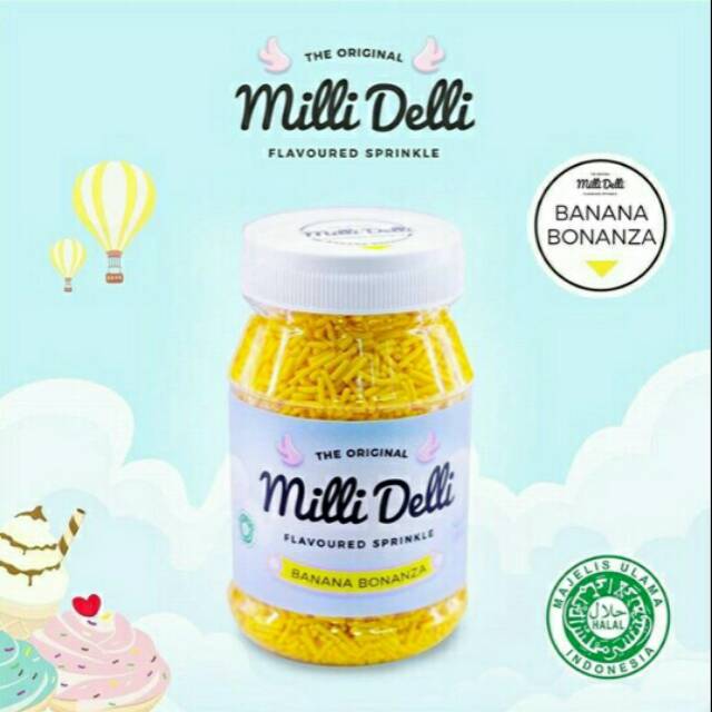 Messes Premium dengan rasa Banana Bonzana yang dapat digunakan untuk topping berbagai menu seperti roti, cake dan es krim #meses #millidelli #millidellidenpasar