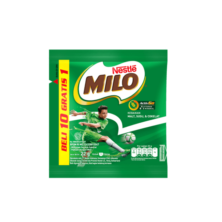 Merupakan Produk dari PT Nestle Indonesia. Milo Activ Go adalah minuman bubuk coklat berenergi mengandung susu dengan protomalt merupakan ekstrak malt yang diperoleh dari gandum utuh barli, yang tinggi vitamin B2, B3, B6, B12, C, dan D serta kalsium, Fosfor, dan zat besi untuk mendukung aktifitas sepanjang hari.