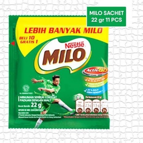Milo Activ-Go Sachet 22gr adalah susu bubuk dengan kandungan Vitamin B, Vitamin C dan kalsium serta protomalt yang menghasilkan energi dan nutrisi yang di butuhkan oleh tubuh untuk mendukung aktifitas sehari-hari