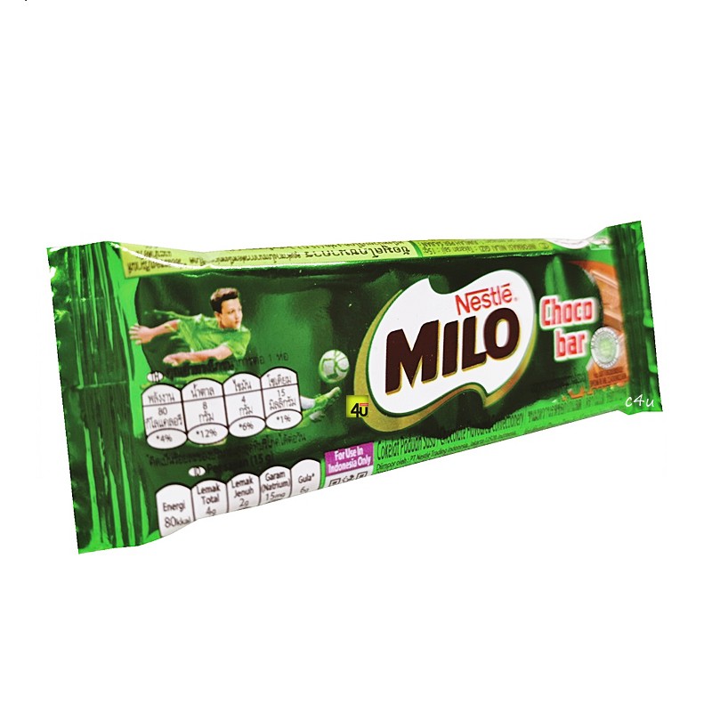 Ini adalah salah satu varian dari Milo. Produksi Nestle Asean (Malaysia) Sdn. Bhd, diimpor resmi oleh PT. Nestle Indonesia - Jakarta. Berupa bar cokelat dgn isi bubuk2 Milo padat. Bisa dibilang merupakan batangan2 cokelat enak yg penuh energi dari kebaikan Milo. Dikemas dalam foil2 hijau khas Milo dgn netto 15 gr. Ukuran mini pas buat bekal aktifitas sehari2 maupun bekal cemilan anak anda. Rasa Juara untuk para Juara. Silahkan diorder :)