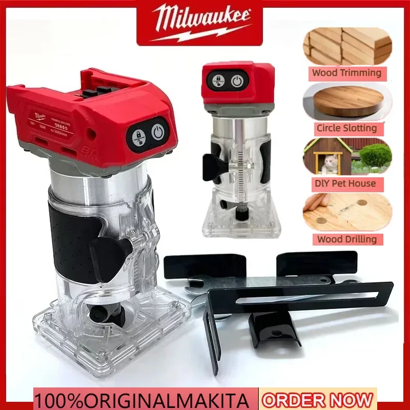 Milwaukee Brushless Trimmer Cordless Electric Router Carpenter Milling Engraving Slotting Machine Carpenter Tool for 18v Battery