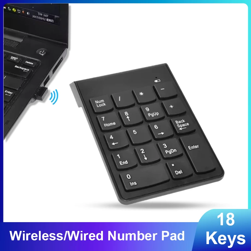 Mini 18 Keys Numeric Keypad 2.4G Wireless Wired USB Number Pad Portable for Laptop PC Windows Mac