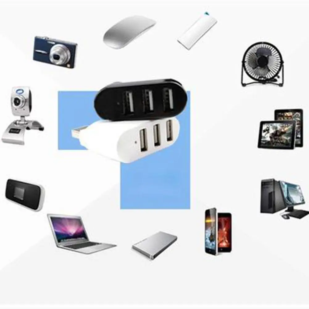 Mini 3 Ports USB2.0 HUB Rotate USB HUB Adapter For PC Desktop Laptop Notebook