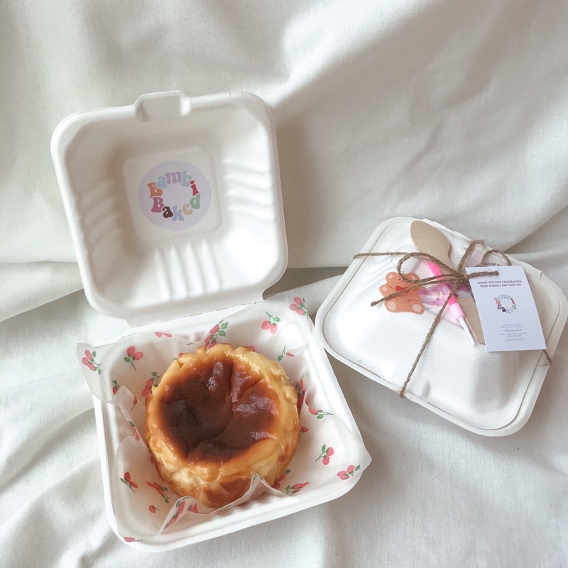 mini basque burnt cheesecake with topping of choice, a candle, and a wooden spoon.