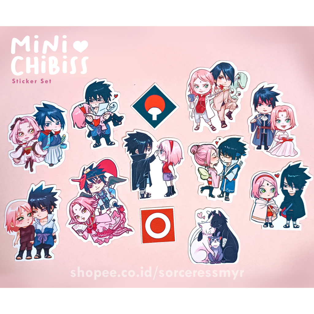 A set of mini sticker (around 5cm x 6 cm each) of chibi SasuSaku in various theme/pose.