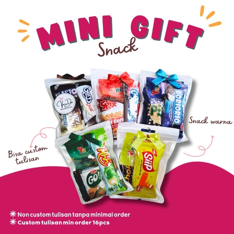 Mini gift snack cocok banget untuk dibagiin ke temen2 di sekolah, kampus, atau tempat kerja di acara/ event spesial