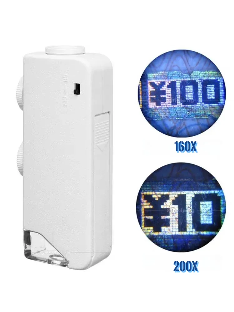 Mini LED Magnifier 160X-200X Zoom Light Microscope Jewelers Loupe Magnifying Lens with LED Lights for Close-Up Viewing