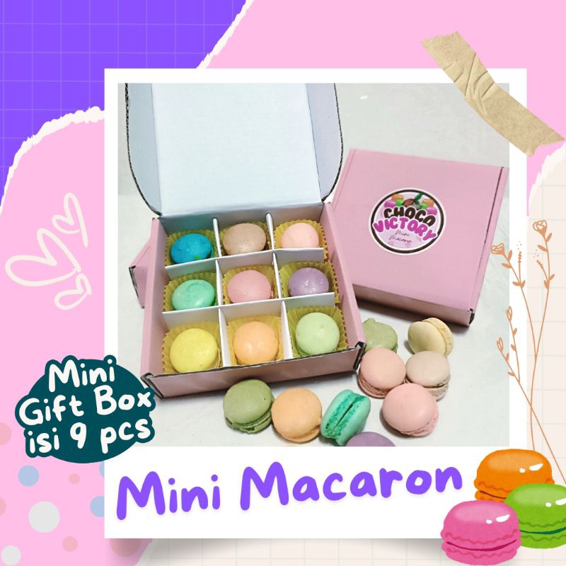 Mini Macaron Gift Box (isi 9 pcs) LANGSUNG KIRIM Free Bubble Wrap BACA CAPTION!