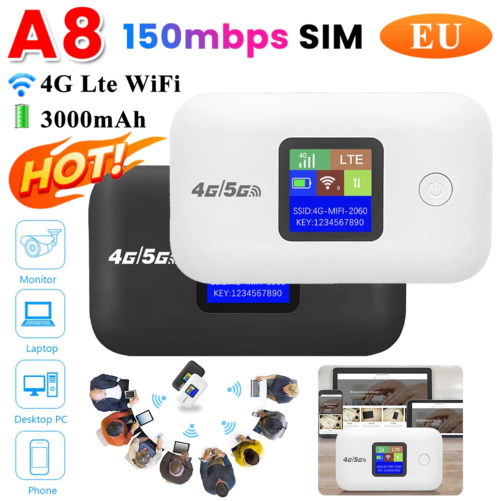 Mini Outdoor WIFI Hotspot 150Mbps Mobile Pocket WiFi Router 3000mAh 4G Pocket WiFi Router with SIM Card Slot 4G Wireless Router