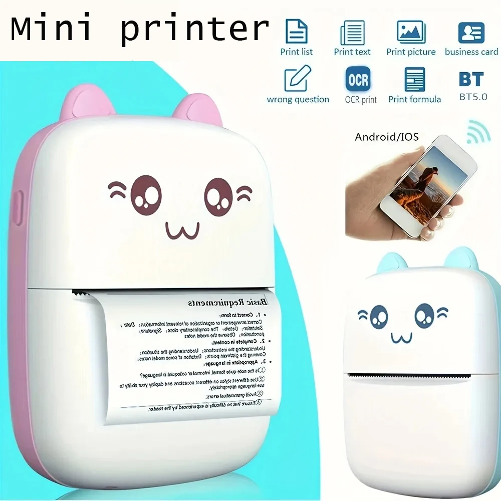 Mini Pocket Printer, Wireless BT Connection Thermal Printer For Photos Receipts Notes Memo Label Portable Inkless Gift Printer