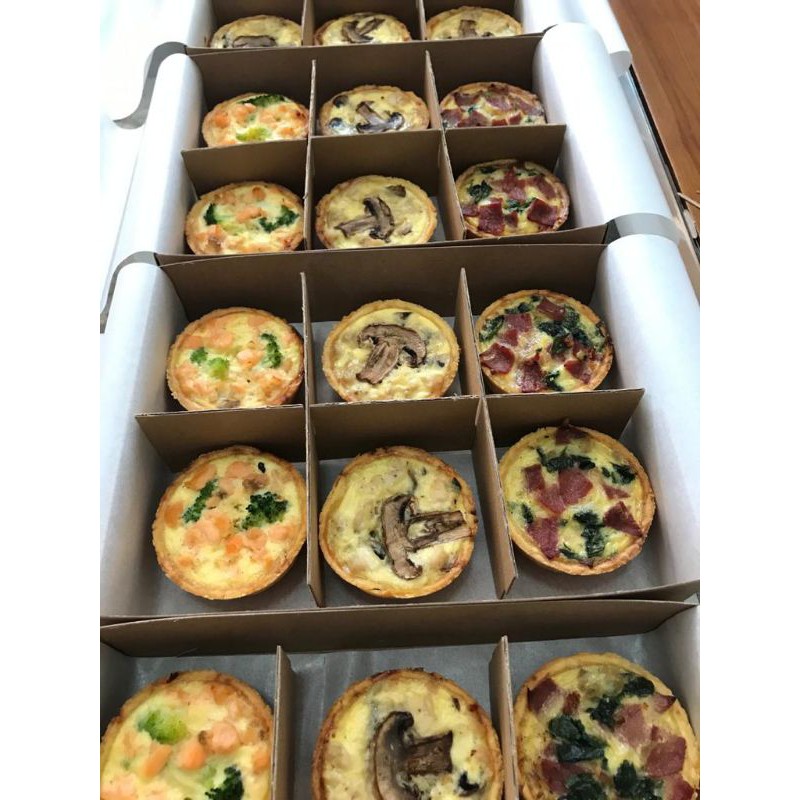 - Pie crust, smoked beef / dada ayam segar / salmon, daun bayam / jamur champignon,