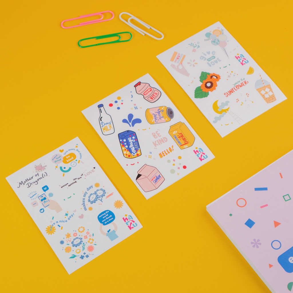 Small stuff to make you smile. You can stick it wherever you like and make it brighter instantly. Mini sticker dengan berbagai tema yang bisa digunakan untuk mendekorasi jurnal ataupun benda-benda harianmu seperti casing HP, laptop, kaca, tablet, meja, dan lain-lain