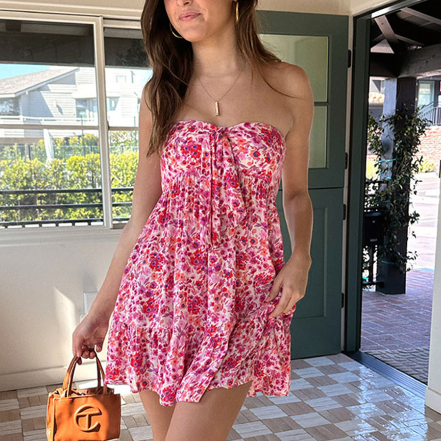 femmes robes,mini-robe portefeuille à fleurs pour femmes