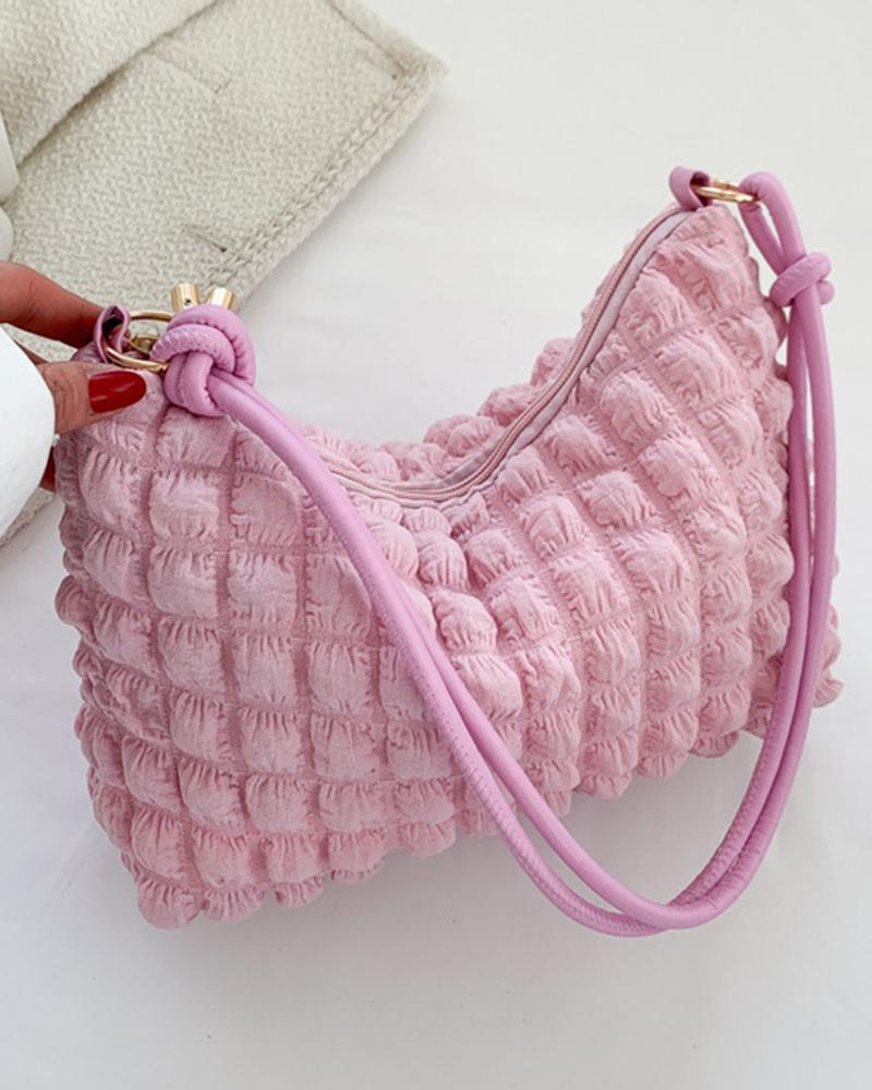 Minimalist Ruched Bubble Textured Shoulder Bag, Pink