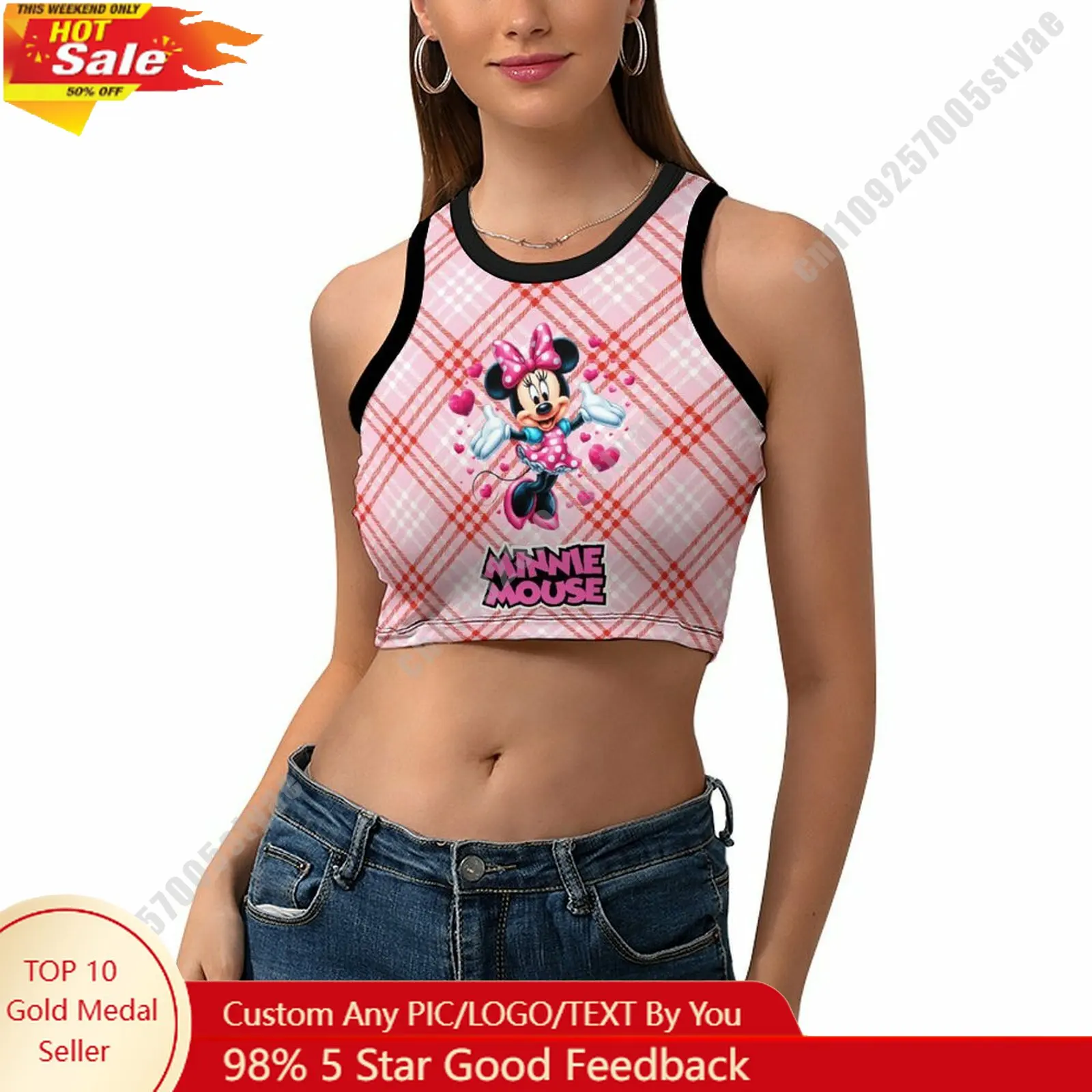 Minnie Mouse Vest Disney Pattern Custom Photo Text Crop Tank Racerback Vest Personalized Graphic Sleeveless Crop Top