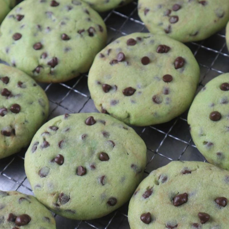 Soft cookies rasa mint dengan chocolate chips di dalam adonannya.