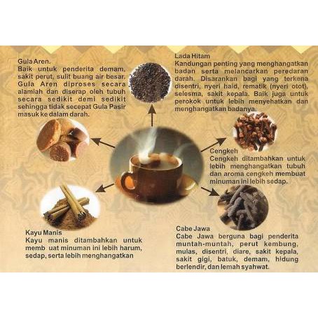* Minuman ini juga berguna bagi penderita muntah-muntah, perut kembung, mulas, disentri, sakit kepala, sakit gigi, batuk, demam, hidung berlendir, lemah syahwat.