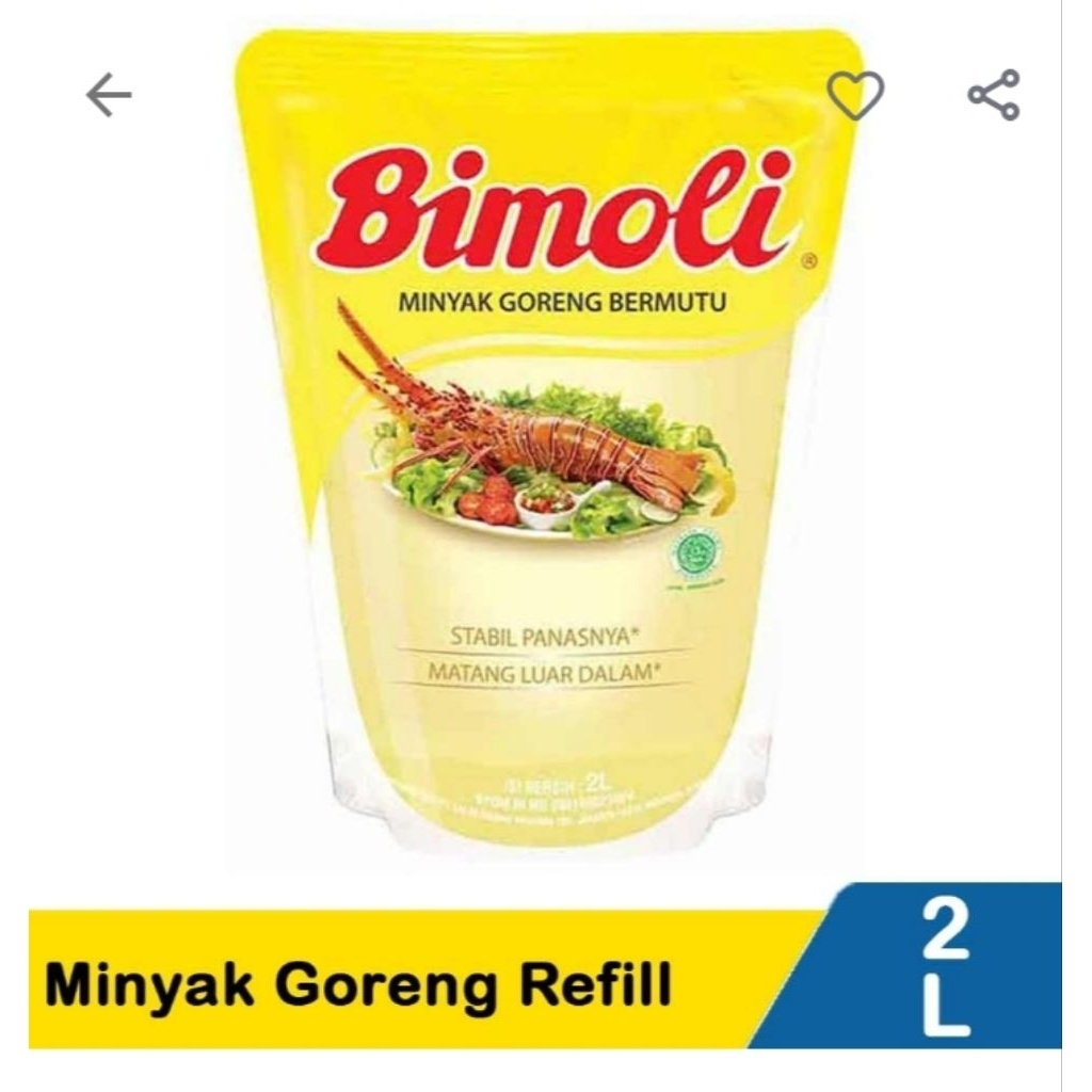 Minyak Bimoli adalah merek minyak goreng yang sangat populer di Indonesia, diproduksi dari kelapa sawit pilihan dan diproses dengan teknologi Golden Refinery, menghasilkan minyak dengan warna kuning keemasan alami. Minyak Bimoli dikenal karena kandungan nutrisinya, stabilitas panasnya, dan hasil gorengan yang renyah.