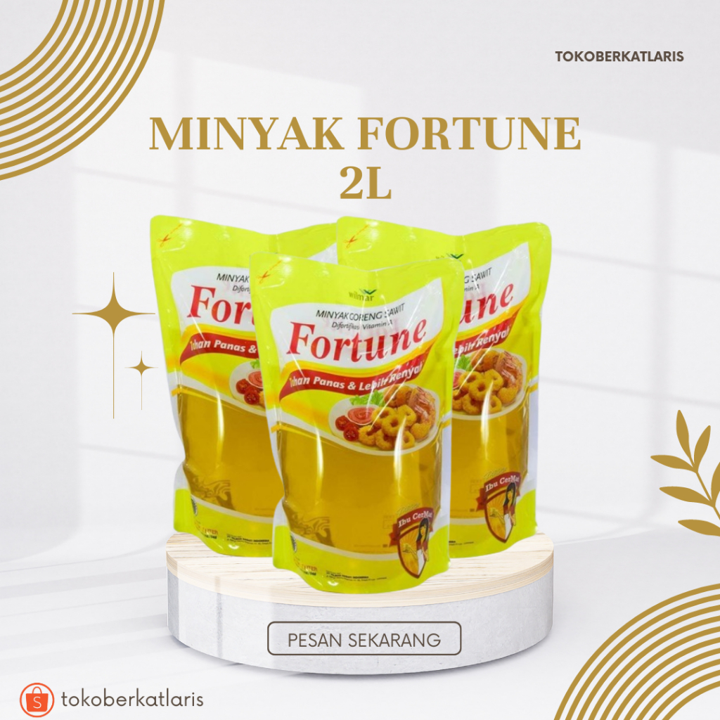 Fortune Minyak Sawit merupakan minyak goreng nabati yang diolah dari buah kelapa sawit segar dan bermutu.Fortune minyak goreng mampu menghasilkan masakan yang lebih renyah dan matang merata dengan minyak yang lebih tahan panas.