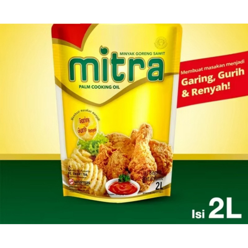Minyak groreng Mitra minyak goreng yang dibuat dari proses olahan kelapa sawit pilihan dan berkualitas, mengandung Vitamin , A,D,E sehingga baik dikonsumsi untuk keluarga, dapat menambah cita rasa dan aroma setiap makanan.