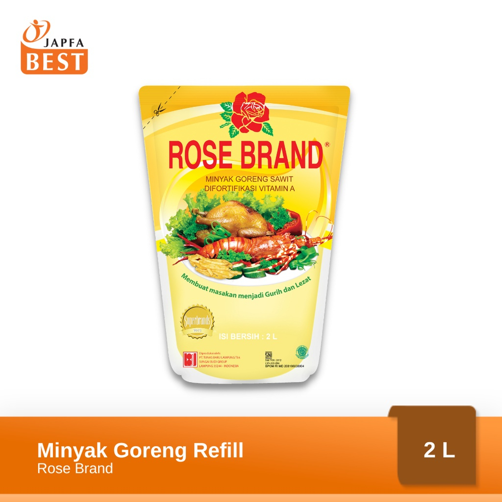 Minyak Goreng Rose Brand terbuat dari kelapa sawit pilihan berkualitas, diproses secara modern dengan teknologi tinggi secara higienis untuk membuat semya masakan menjadi lebih gurih dan lezat. Minyak Goreng Rose Brand mengandung BETA Karoten, omega 9, vitamin A dan E yang baik untuk tubuh.