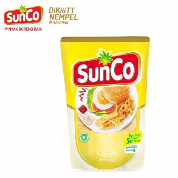 Sunco Refill 2L Diproduksi dari buah kelapa sawit segar pilihan dan difortifikasi Vitamin A.