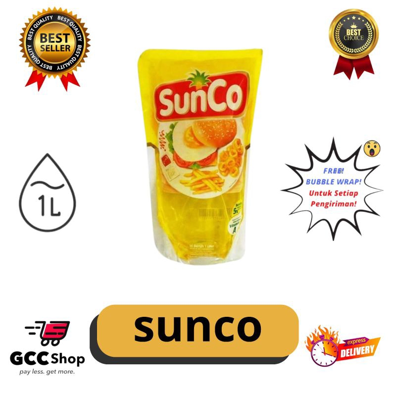 Sunco Refill ukuran 1 Liter kemasan pouch Diproduksi dari buah kelapa sawit segar pilihan dan difortifikasi Vitamin A.