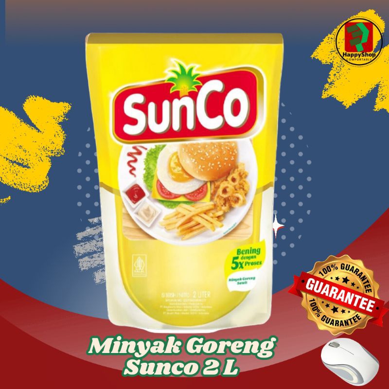 SunCo Minyak Goreng 2 L adalah minyak goreng masak yang diproduksi dari buah kelapa sawit segar pilihan dan difortifikasi dengan vitamin A. Diproses dengan teknologi mutakhir melalui 5 tahap pemrosesan, yakni 3 kali proses pemurnian dan 2 kali proses penyaringan sehingga menghasilkan minyak goreng yang baik dan berkualitas. Adapun ciri minyak goreng yang baik adalah warna minyak yang bening, tidak mudah beku, dan karakternya seperti air. Warna Sunco yang bening dan tidak cepat hitam atau teroksidasi dapat meminimalkan risiko kanker. Berbeda dengan minyak goreng sawit lain, Sunco tidak mudah beku karena mengandung asam lemak jenuh terendah yang dapat meminimalkan peningkatan kolesterol jahat. Tak hanya itu karakter Sunco yang seperti air, tidak lekat, dan tidak menyerap berlebih di makanan, membuat kegiatan makan lebih nyaman tanpa rasa gatal di tenggorokan.