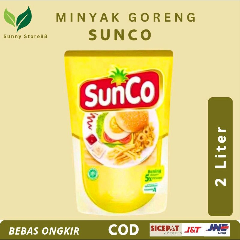 SunCo Minyak Goreng 2 L adalah minyak goreng masak yang diproduksi dari buah kelapa sawit segar pilihan dan difortifikasi dengan vitamin A. Diproses dengan teknologi mutakhir melalui 5 tahap pemrosesan, yakni 3 kali proses pemurnian dan 2 kali proses penyaringan sehingga menghasilkan minyak goreng yang baik dan berkualitas. Adapun ciri minyak goreng yang baik adalah warna minyak yang bening, tidak mudah beku, dan karakternya seperti air. Warna Sunco yang bening dan tidak cepat hitam atau teroksidasi dapat meminimalkan risiko kanker. Berbeda dengan minyak goreng sawit lain, Sunco tidak mudah beku karena mengandung asam lemak jenuh terendah yang dapat meminimalkan peningkatan kolesterol jahat. Tak hanya itu karakter Sunco yang seperti air, tidak lekat, dan tidak menyerap berlebih di makanan, membuat kegiatan makan lebih nyaman tanpa rasa gatal di tenggorokan