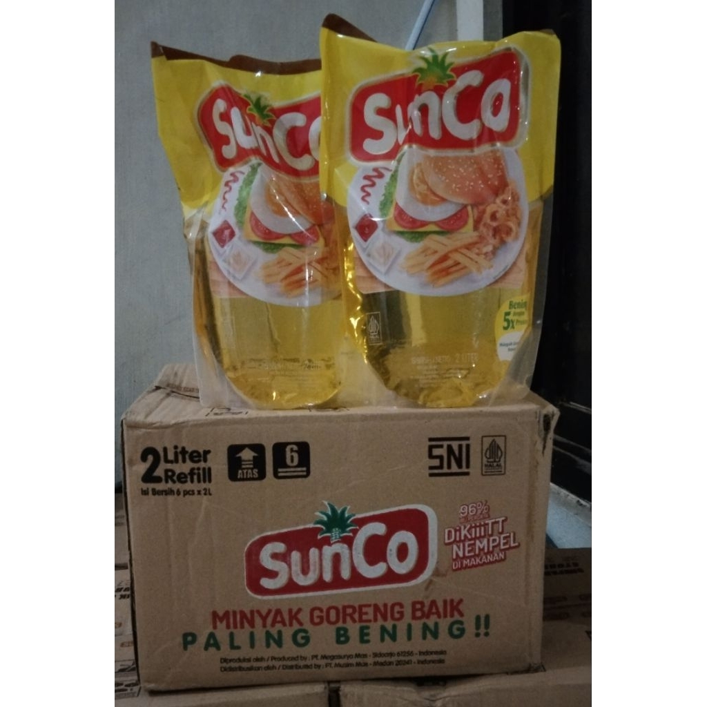 SunCo Minyak Goreng 2 L adalah minyak goreng yang diproduksi dari buah kelapa sawit segar pilihan dan difortifikasi dengan vitamin A. Diproses dengan teknologi mutakhir melalui 5 tahap pemrosesan, yakni 3 kali proses pemurnian dan 2 kali proses penyaringan. Menghasilkan minyak goreng yang baik dan berkualitas.