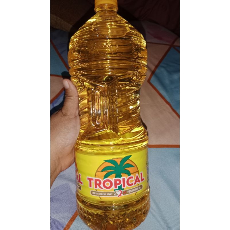 Minyak goreng Tropikal 2liter kemasan botol.Minyak goreng sawit 2X penyaringan sehingga membuat minyak menjadi jernih. Cocok untuk membuat macam macam gorengan untuk cemilan keluarga.