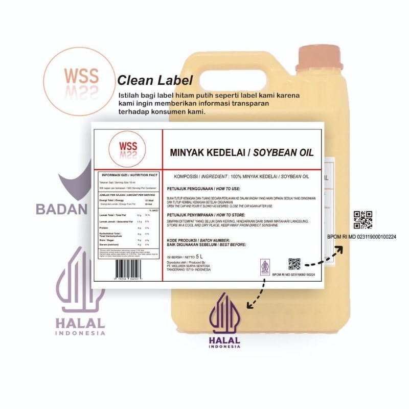 ISTILAH BAGI LABEL HITAM PUTIH SEPERTI LABEL PADA MINYAK KEDELAI/SOYA OIL/SALAD OIL KAMI. DENGAN MENGGUNAKAN CLEAN LABEL, KAMI INGIN MEMBERIKAN INFORMASI SECARA TRANSPARAN TERHADAP PRODUK KAMI KEPADA KONSUMEN SEHINGGA SEMAKIN MEMBERIKAN RASA AMAN DAN NYAMAN BAGI KONSUMEN DALAM MENGKONSUMSI MINYAK KEDELAI/SOYA OIL/SALAD OIL INI.